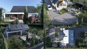 Chcesz do swojej elewacji dopasować również taras, wybrać zadaszenie, ułożyć oświetlenie, zaprojektować ogrodzenie, zobaczyć jaki podjazd będzie pasował?